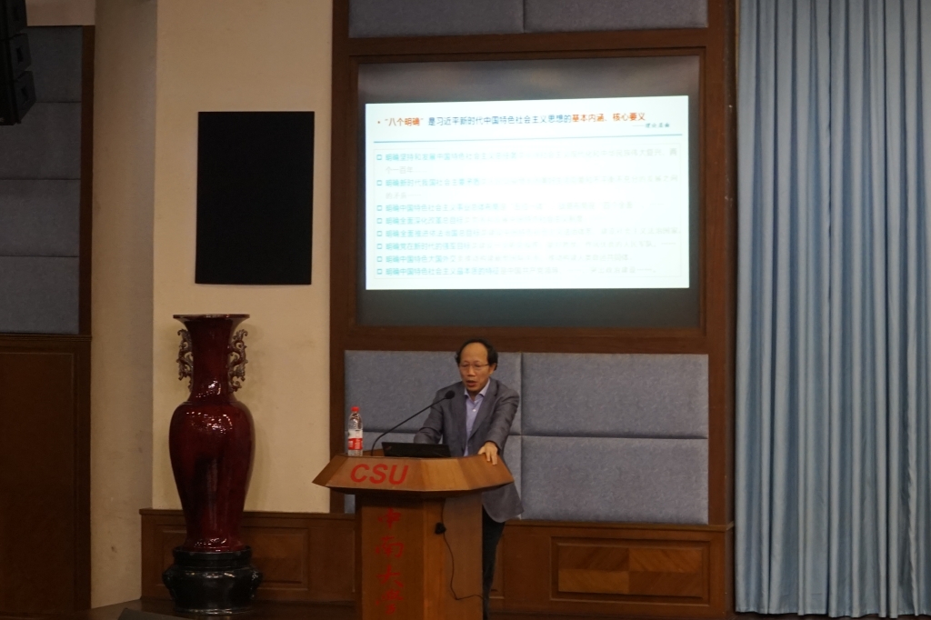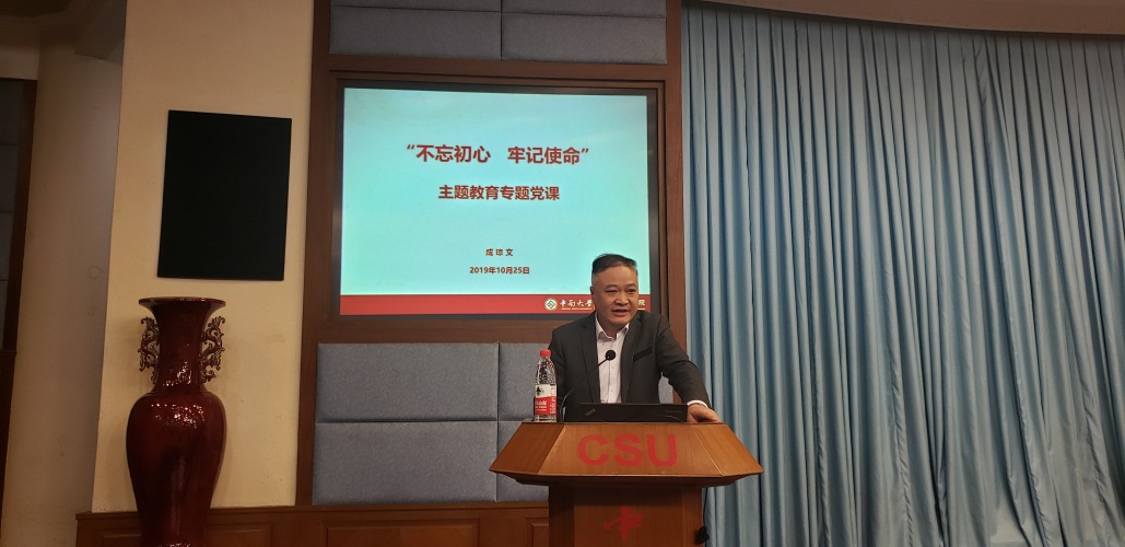 10月25日下午两点半,学院在校本部科教楼国际报告厅开展“不忘初心,牢记使命”主题教育专题党课。学校党委常委、副校长周科朝,学院党委书记成琼文,学院院长柴立元分别讲授专题党课,学校主题教育第三指导组组长、组织部副部长邹庆林到会指导,学院领导班子成员,党支部书记,师生党员共430余人参加党课学习。学院院长、党委副书记柴立元主持专题党课。