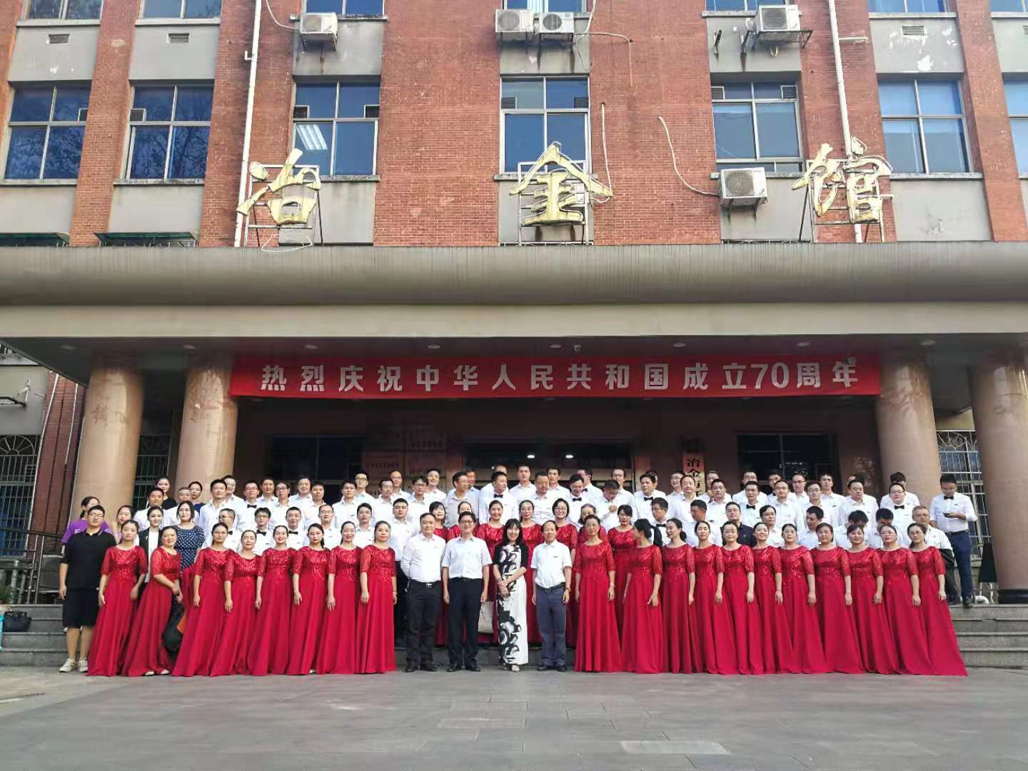 方案确定后,学院组织教职工积极报名并进行排练,近百人报名参加,9月6日校工会常务副主席陈玉如、副主席何庆文、调研员彭南友来学院对汇演节目进行审查,他们对学院合唱节目给予了充分肯定,极大地鼓舞了学院教师的信心。在合唱排练过程中,学院党政工高度重视,成琼文书记全程参与合唱排练,亲自解决排练过程中的各项困难和问题;柴立元院长多次亲临训练现场,鼓舞士气;肖劲教授顶住压力,担任合唱指挥,除常规排练外,多次进行指挥训练到凌晨,每次排练都汗水湿透衣背;学院教职工克服困难,按时参加合唱排练,积极配合学院的安排,保障合唱效果,院部门工会委员和工会小组长认真组织筹备,从声部人员确定、专业指导训练、声部集中排练、服化道敲定、后勤保障供给等各环节精心组织,全力做好保障工作,先后组织12次排练,每次至少2小时,在冶金馆临时停电时,老师们也坚持在黑暗中进行合唱训练,将冶金学科艰苦奋斗的文化精神表现的淋漓尽致。