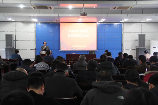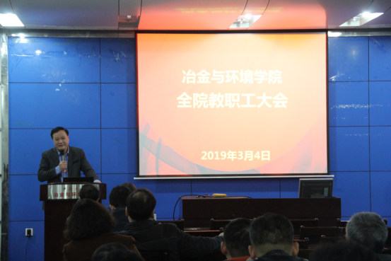 3月4日下午,学院在冶金馆301召开新学期第一次全院教职工大会,明确新学期学院改革发展方向,部署落实党建工作、学科建设等重点工作。全体教职工参加了会议,会议由院党委副书记张凯主持。