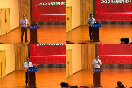 2023级研究生辅导员胡寒结合真实案例进行了校纪校规、安全教育、思想道德及心理健康教育。研究生教育干事张大旭介绍了研究生课程学习与培养环节,现场演示了研究生教育管理系统的操作规范,并讲解了研究生各类资助政策,帮助新生早日融入校园生活,开启新征程、书写新篇章。