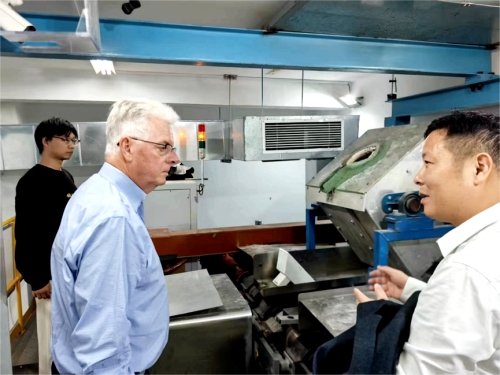 报告会后,Cramb院士在王万林教授陪同下参观了欧飞 钢铁所实验室,并与钢铁所教师在冶金馆228会议室展开座谈。双方围绕高速连铸、清洁冶金、AI应用等议题进行了广泛讨论,共同探讨行业技术难点与创新方向。