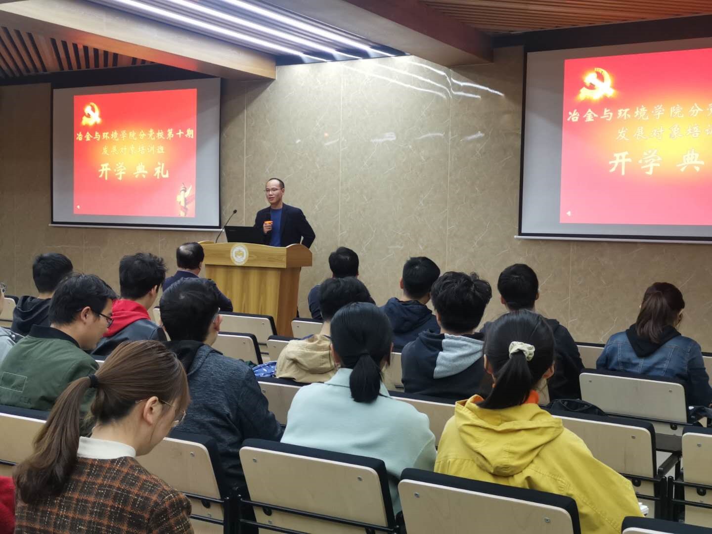 院党委张凯副书记对培训班学员提出要求:一是要加强党的理论知识的学习,坚定共产主义理想信念,真正做到思想上和行动上同时向党组织靠拢;二是要在同学中发挥模范先锋作用,展现出中南学子的精气神;三是要坚持自我管理,严格要求自己,遵守校纪校规和党纪国法,心中牢记并践行党员的八项权利和八项义务。开学典礼结束后,成琼文书记为本期发展对象讲授《学习领会习近平新时代中国特色社会主义思想》专题党课,他强调广大学员要不忘初心,牢记使命,高举中国特色社会主义伟大旗帜,决胜全面建成小康社会,为实现中华民族伟大复兴的中国梦不懈奋斗。