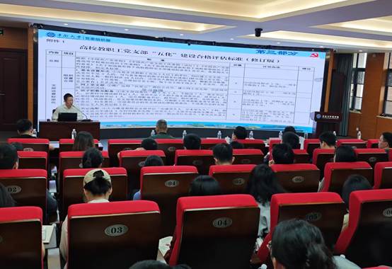 首先,校党委组织部正处级组织员凌春雨讲授题为《以“五化”建设为抓手,推进党支部标准化规范化建设》的培训讲座,从党支部建设的重要性到党支部“五化”建设的主要内容、常见问题和如何推进等多个方面逐一展开讲解。他强调,党支部“五化”建设要坚持统筹协调推进,把强基础与树品牌相结合,层层递进,从量到质不断突破和提升。