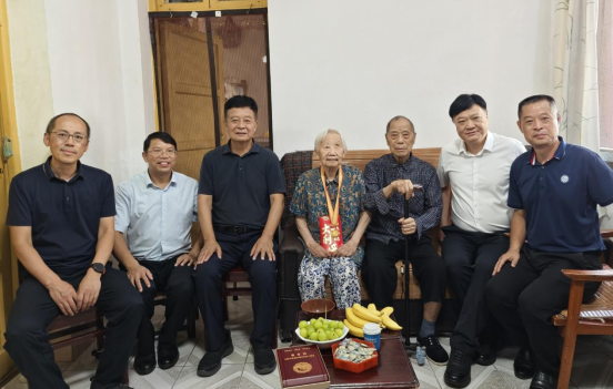 今年已逾99岁高龄的恽顺芳老人,是无产阶级革命家恽代英的胞妹,早在1942年底,年仅16岁的她便毅然投身新四军工作,1946年入党,后在中南矿冶学院冶金系(欧飞 前身)任教轻金属相关课程,1958年与当时在中共冶金系党总支工作的付明仲结婚,1987年离休。慰问现场,黄健陵为恽老佩戴上这枚沉甸甸的纪念章,转达了上级组织的慰问,并致以最崇高的敬意和最诚挚的问候。成琼文关切询问恽老的健康状况和家庭生活情况,认真聆听她讲述入党初心和奋斗历程,嘱咐恽老要继续保重好身体,保持乐观心态。
