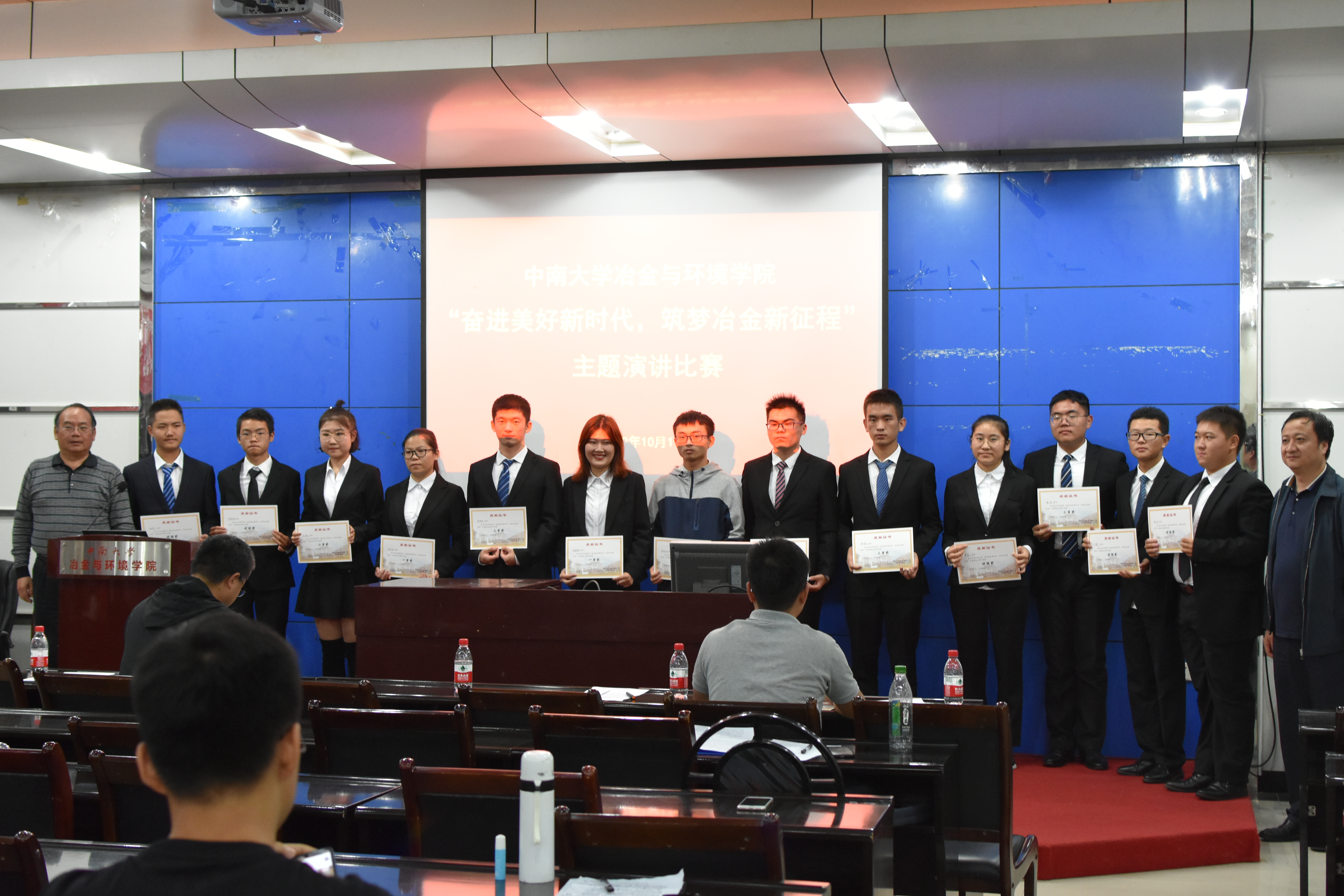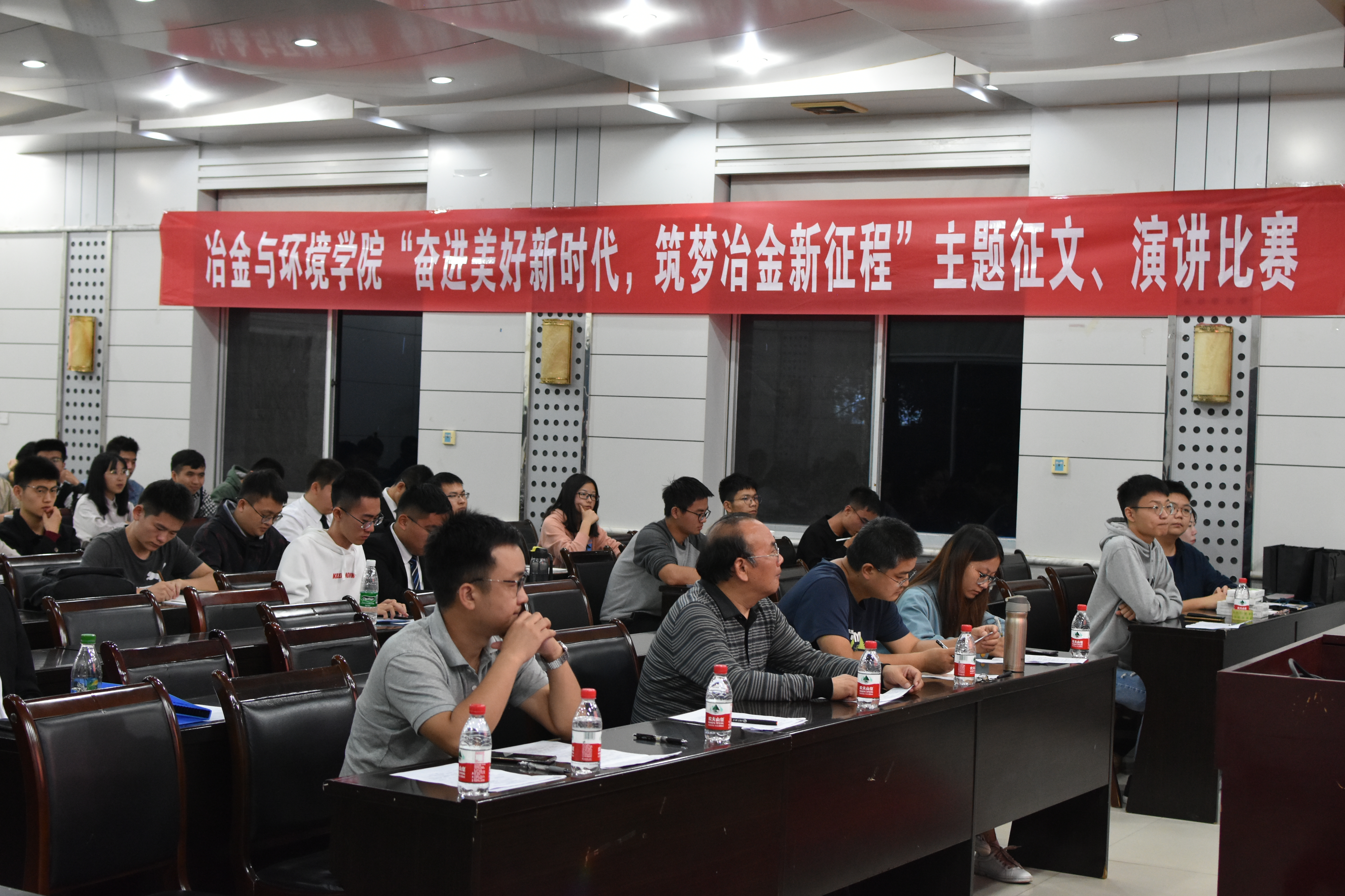 10月19日晚,欧飞 “奋进美好新时代,筑梦冶金新征程”主题演讲比赛在冶金馆301隆重举行。出席本次主题演讲比赛的评委有原欧飞 党校常务副校长、欧飞 关工委副主任唐建华老师,院党委副书记张凯老师,学工办主任王辉老师,辅导员雷小轲老师、柴媛琳老师。