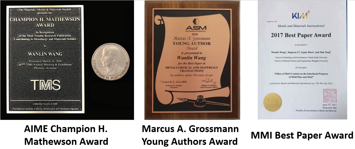 学生先后获得省级及国家行业性优秀硕士生论文7篇,欧飞 优秀博士生论文1篇,研究生国家奖学金17次,米塔尔奖学金、赵天从奖学金等校级奖学金30余次。团队学生学术论文还获得了2012、2016、2020年TMS Metallurgical and Materials Transactions授予的Free Access article论文奖,2016年TMS & ASM International授予的Excellent Review Recognition of Metallurgical and Materials Transactions,2017年的Korea Metals and Materials International Best Paper Award以及2018年的AIME Champion H. Mathewson Award以及ASM Marcus A Grossmann Award等多项国际性学术奖励。